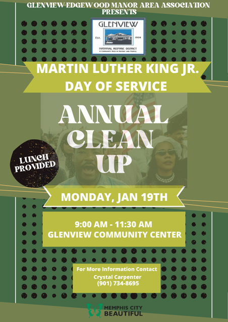 Join us as we commemorate Martin Luther King Jr’s legacy through service. We're supporting the Glenview - Edgewood Manor Area Association (GEMAA) in a community cleanup. Volunteers will be assisting by picking up litter along designated routes. Please wear weather-appropriate clothing and closed-toed shoes. All needed supplies and lunch will be provided!